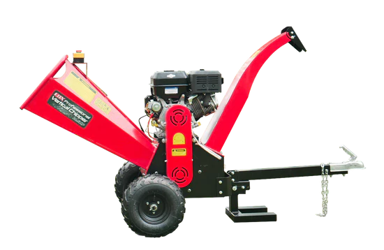 Our 13.5hp Briggs & Stratton powered Vertical Wood Chipper is a compact, durable and powerful machine, suitable for those wanting quality mulch from larger diameter material. With dual rotating blades, this electric-start machine effortlessly seizes branches and garden debris, handling pieces up to a remarkable 100mm in diameter. It efficiently converts them into neat, square 12mm chips that will promptly decompose. Built with sturdy all-steel construction, an extended drawbar featuring a standard 50mm tow ball, and substantial wheels, navigating uneven terrain becomes a simple task.